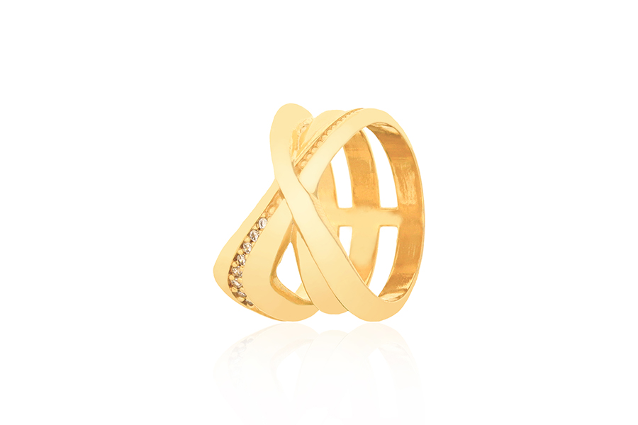 ANEL BANHADO EM OURO, CRAVEJADO, 15mm LARGURA