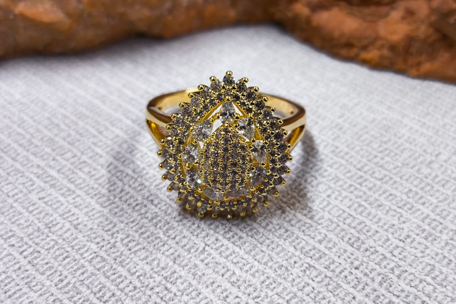 ANEL BANHADO EM OURO, CRISTAL, GOTA 18x13mm