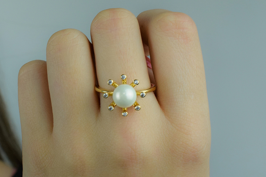 ANEL BANHADO EM OURO COM PÉROLA SHELL 4mm