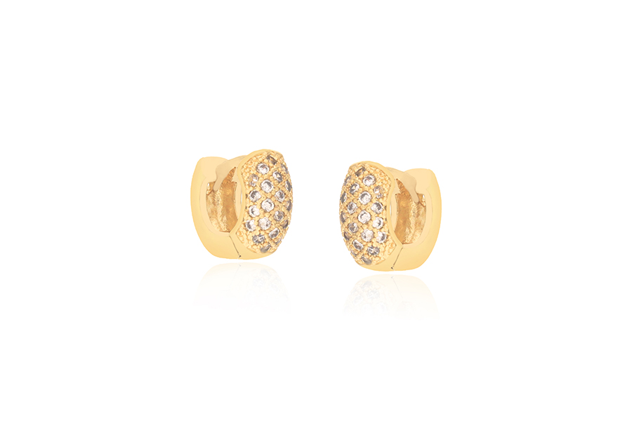 BRINCO BANHADO EM OURO, 15mm ALTURA COM 21 ZIRCÔNIAS