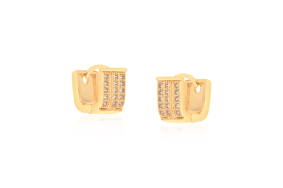 BRINCO BANHADO EM OURO, 15mm ALTURA COM 21 ZIRCÔNIAS
