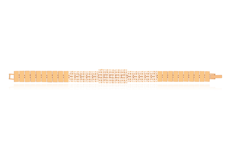 PULSEIRA BANHADA EM OURO, CRISTAL OVAL 11X9mm OU TRIANGULAR 12mm, FECHO GRAVATA, RABO DE RATO 1,40mm E PONTO DE LUZ 3,50mm, COLEÇÃO PINK