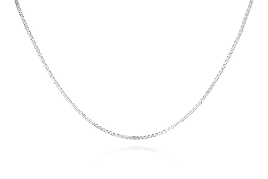 GARGANTILHA BANHADA EM RÓDIO BRANCO, ELO VENEZIANA 0,80mm, 42cm COMPRIMENTO, EXTENSOR 5cm COMPRIMENTO E PINGENTE REDONDO 10mm DIÂMETRO