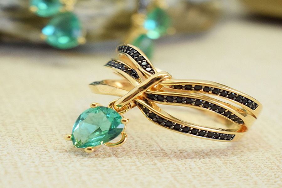ANEL BANHADO EM OURO, CRISTAL, GOTA 18x13mm