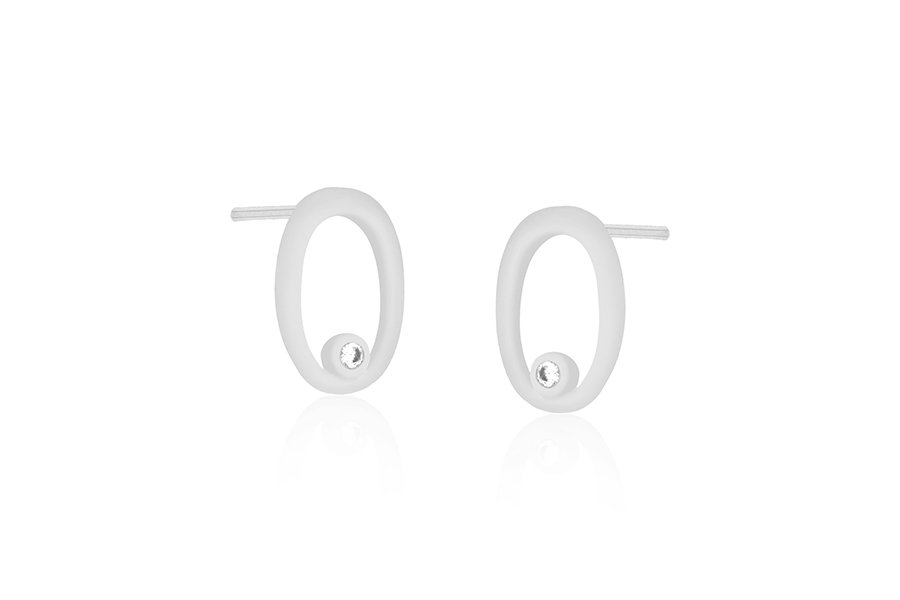 BRINCO BANHADO EM RÓDIO BRANCO, PONTO DE LUZ 5mm, CRAVAÇÃO INGLESA