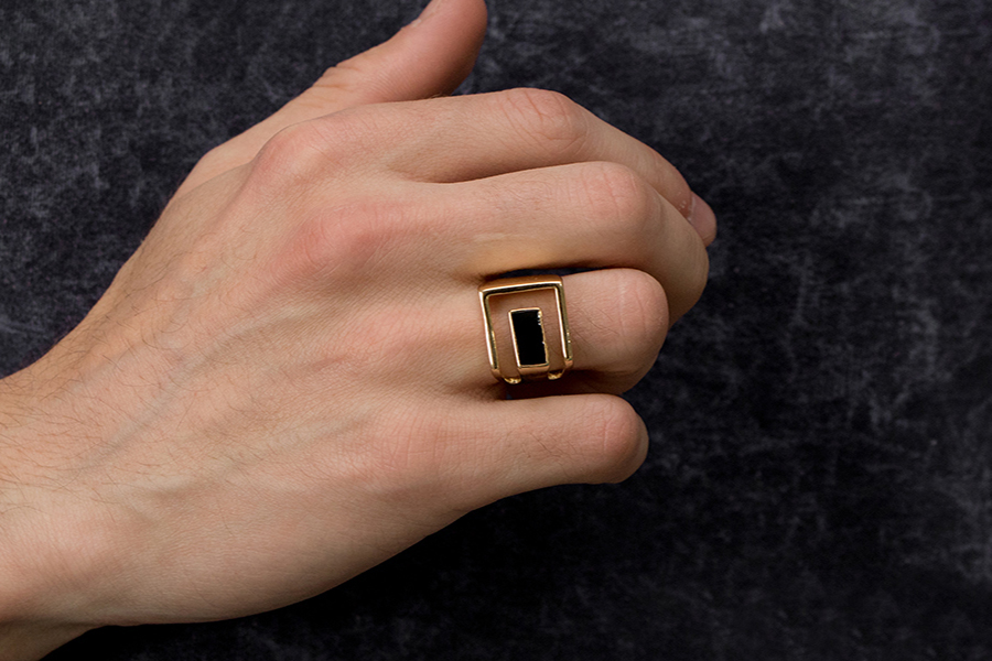 ANEL BANHADO EM OURO, SOLITÁRIO 10mm, ESTOQUE TRADICIONAL