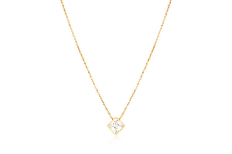 GARGANTILHA BANHADA EM OURO, CRISTAL FUSION RETANGULAR 10x8mm, GOTA 14x10mm, VENEZIANA 0,80mm, GRAVATA, QUALQUER COR