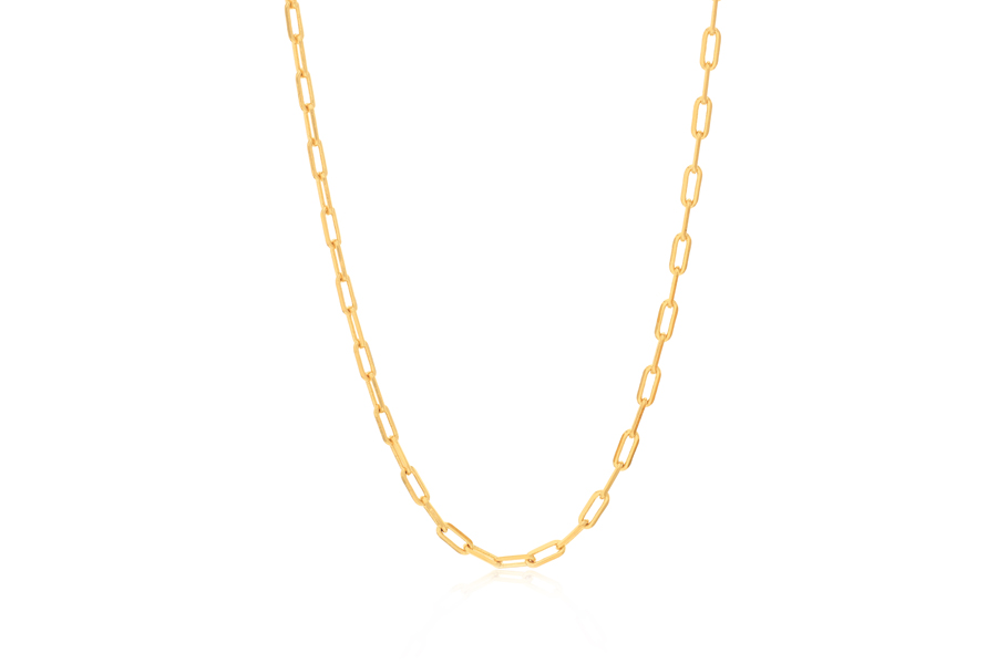 CORRENTE BANHADA EM OURO, ELO CORDA 2,50mm, 45cm COMPRIMENTO, EXTENSOR 5cm COMPRIMENTO E PESO 8,70g