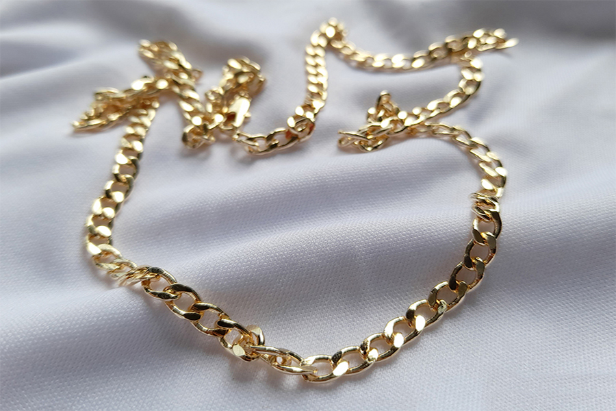 CORRENTE BANHADA EM OURO, ELO PORTUGUÊS 5mm, 45cm COMPRIMENTO, EXTENSOR 5cm COMPRIMENTO E PESO 12,7g