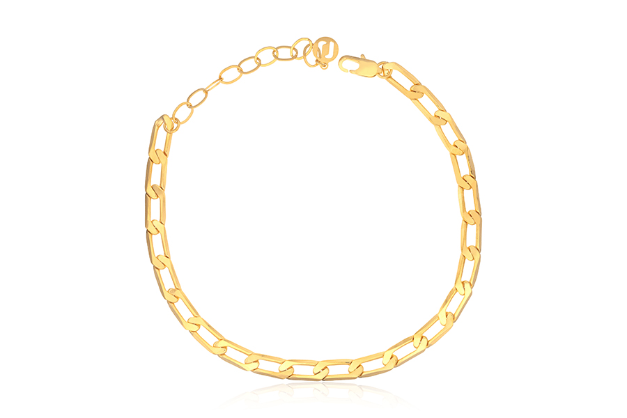 TORNOZELEIRA BANHADA EM OURO, ELO 2,60mm LARGURA, 22cm COMPRIMENTO E FIGA