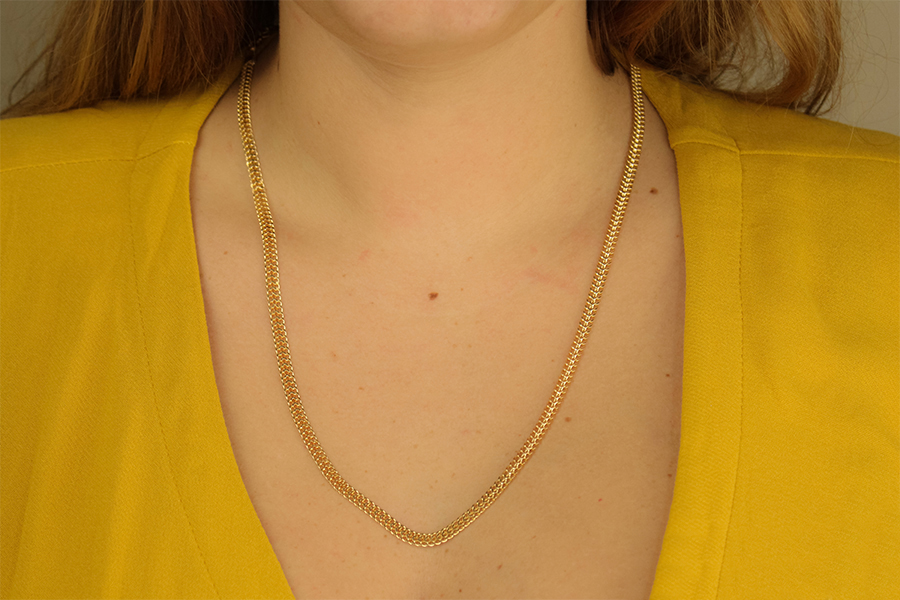 CORRENTE BANHADA EM OURO, ELO CORDA 2,50mm, 45cm COMPRIMENTO, EXTENSOR 5cm COMPRIMENTO E PESO 8,70g