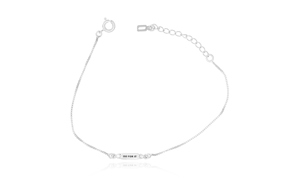 PULSEIRA BANHADA EM RÓDIO BRANCO, ELO PORTUGUÊS 2,50mm, 16cm COMPRIMENTO, E PONTO DE LUZ 4,50mm E PINGENTE FÉ 11mm DIÂMETRO