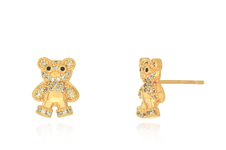 BRINCO BANHADO EM OURO, 15mm ALTURA COM 21 ZIRCÔNIAS