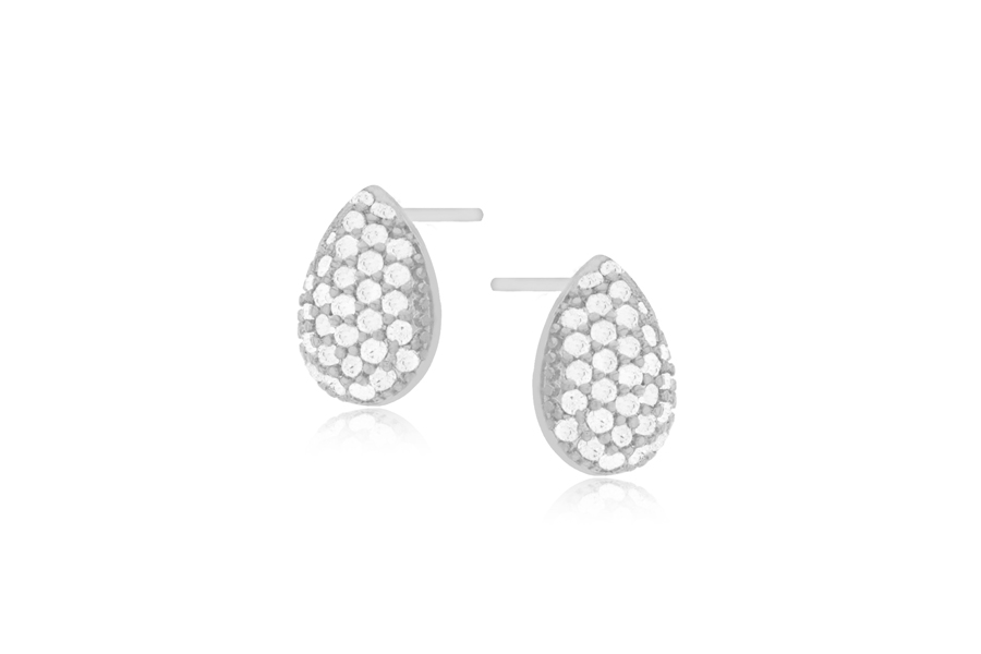 BRINCO BANHADO EM RÓDIO BRANCO, CRISTAL GOTA, 11,20mm ALTURA