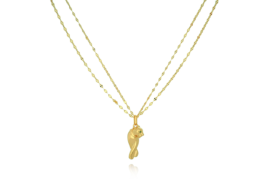 GARGANTILHA BANHADA EM RÓDIO BRANCO, ELO VENEZIANA 0,80mm, 40cm COMPRIMENTO, EXTENSOR 10cm COMPRIMENTO E PANTERA 20mm ALTURA