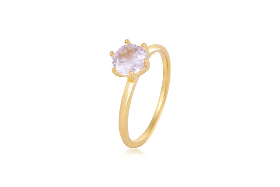 ANEL BANHADO EM OURO, CRISTAL, GOTA 18x13mm