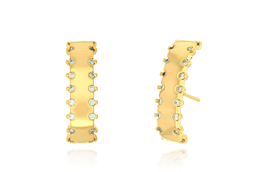 BRINCO BANHADO EM OURO, 15mm ALTURA COM 21 ZIRCÔNIAS