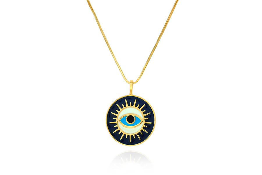 GARGANTILHA BANHADA EM PRATA LEVE, ELO CARTIER 5x2mm, 60cm COMPRIMENTO E LIVRAI-ME DO MAL 45x3,80mm