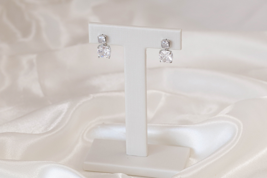 BRINCO BANHADO EM RÓDIO BRANCO, PONTO DE LUZ 5mm, CRAVAÇÃO INGLESA