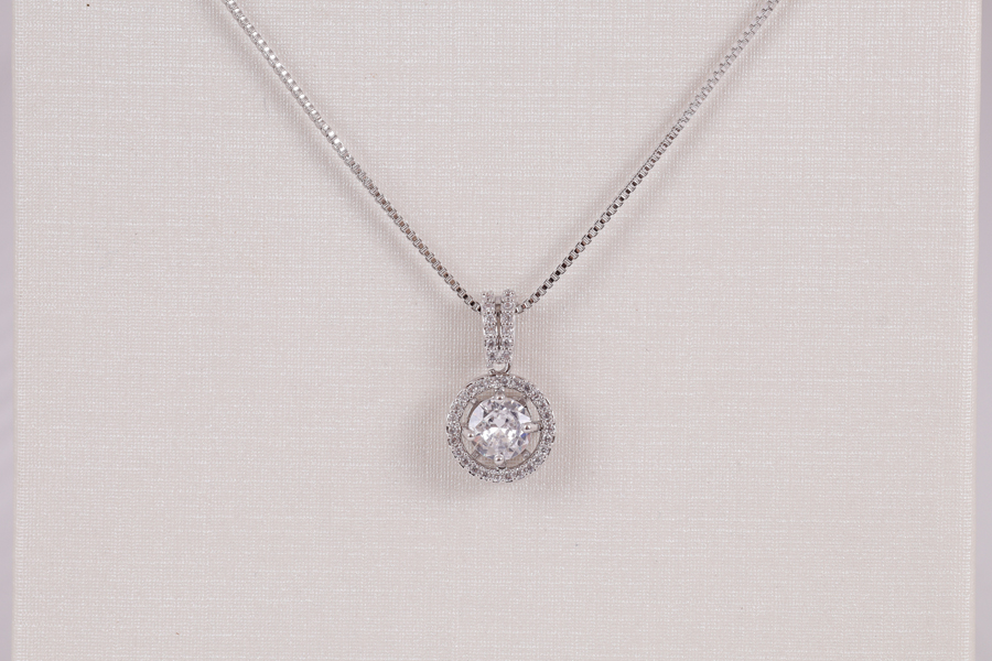 GARGANTILHA EM PRATA, 2 FIOS CRAVEJADOS E ENTRELAÇADOS, 1 ZIRCÔNIA GOTA, ELO CADEADO, 40+5cm COMPRIMENTO