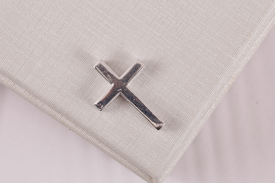 PINGENTE EM PRATA, CRUZ LISA COM VERSO EM FILIGRANA, 20mm ALTURA E 14mm LARGURA