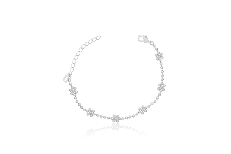 PULSEIRA BANHADA EM PRATA LEVE, PONTO DE LUZ 3mm DIÂMETRO E CORAÇÃO COM PATA 8mm LARGURA, ELO VENEZIANA ALONGADA 1,50mm LARGURA