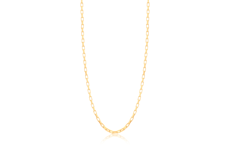 CORRENTE BANHADA EM OURO, ELO CORDA 2,50mm, 45cm COMPRIMENTO, EXTENSOR 5cm COMPRIMENTO E PESO 8,70g