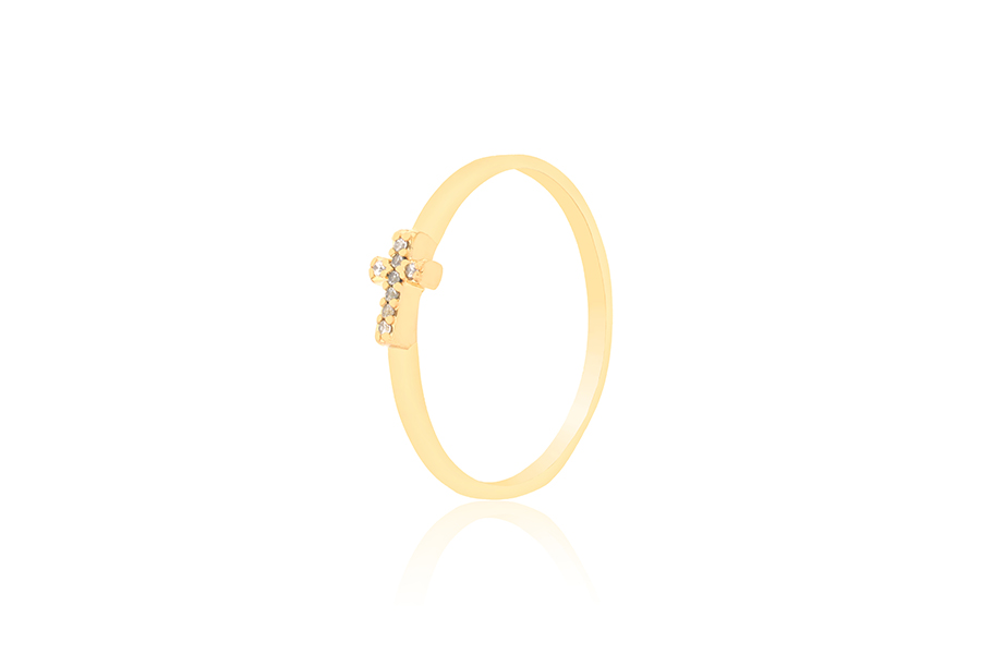 ANEL BANHADO EM OURO, 17mm LARGURA, COM 5 ZIRCÔNIAS
