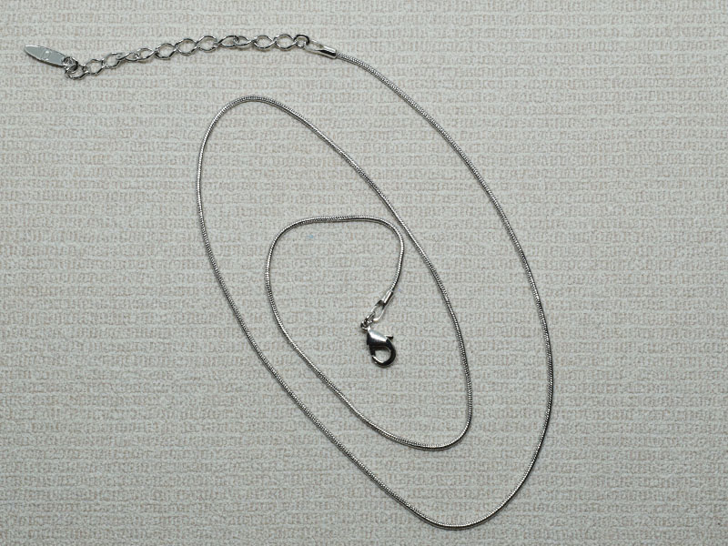 GARGANTILHA BANHADA EM RÓDIO BRANCO, ELO VENEZIANA 0,80mm, 42cm COMPRIMENTO, EXTENSOR 5cm COMPRIMENTO E PINGENTE REDONDO 10mm DIÂMETRO