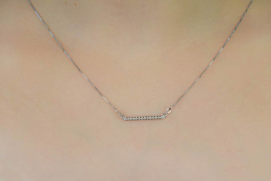 CHOKER BANHADA EM RÓDIO BRANCO, VENEZIANA 0,80mm, 36cm COMPRIMENTO, PINGENTE 8,40mm E 3,50mm DIÂMETRO