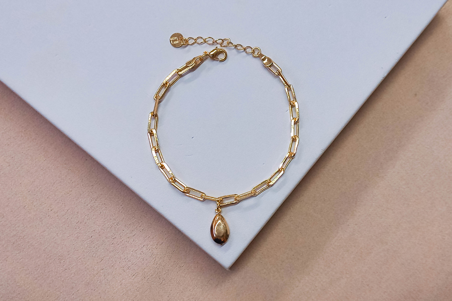 PULSEIRA BANHADA EM OURO, ELO PORTUGUÊS 3mm, ELO CORAÇÃO 4,20mm LARGURA, PINGENTE CORAÇÃO 11mm LARGURA COM MENINA