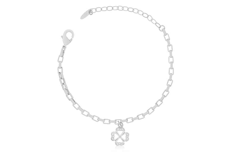 PULSEIRA BANHADA EM PRATA LEVE, PONTO DE LUZ 3mm DIÂMETRO E CORAÇÃO COM PATA 8mm LARGURA, ELO VENEZIANA ALONGADA 1,50mm LARGURA