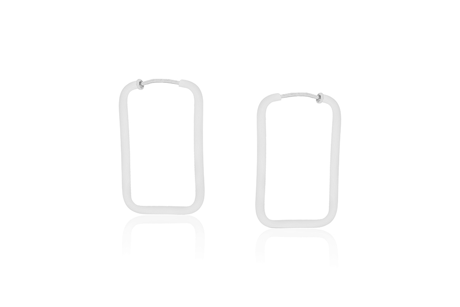 BRINCO BANHADO EM RÓDIO BRANCO, BASE RETANGULAR 10x7mm E RETÂNGULO 20x17mm