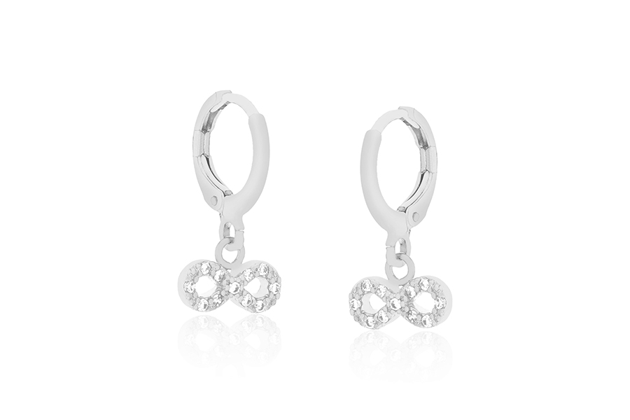 BRINCO BANHADO EM RÓDIO BRANCO, PONTO DE LUZ 5mm, CRAVAÇÃO INGLESA