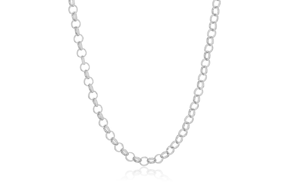 CORRENTE BANHADA EM RÓDIO BRANCO, ELO 1,50mm DIÂMETRO, 80cm COMPRIMENTO, 5cm COMPRIMENTO E PESO 11,20g