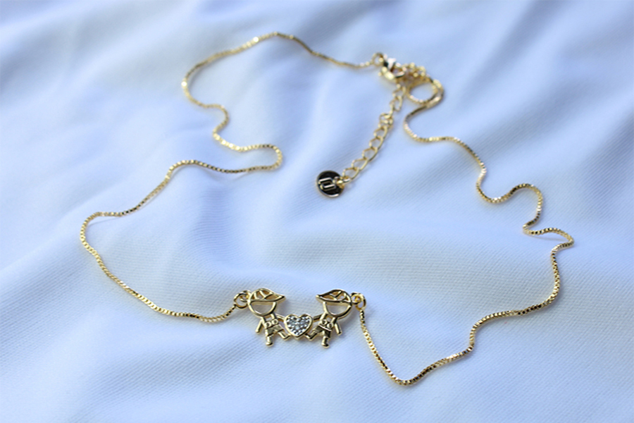 GARGANTILHA BANHADA EM OURO, ELO 1,80mm LARGURA, 40cm COMPRIMENTO E CORAÇÃO 11mm LARGURA COM ZIRCÔNIAS BRANCAS OU COLORIDAS