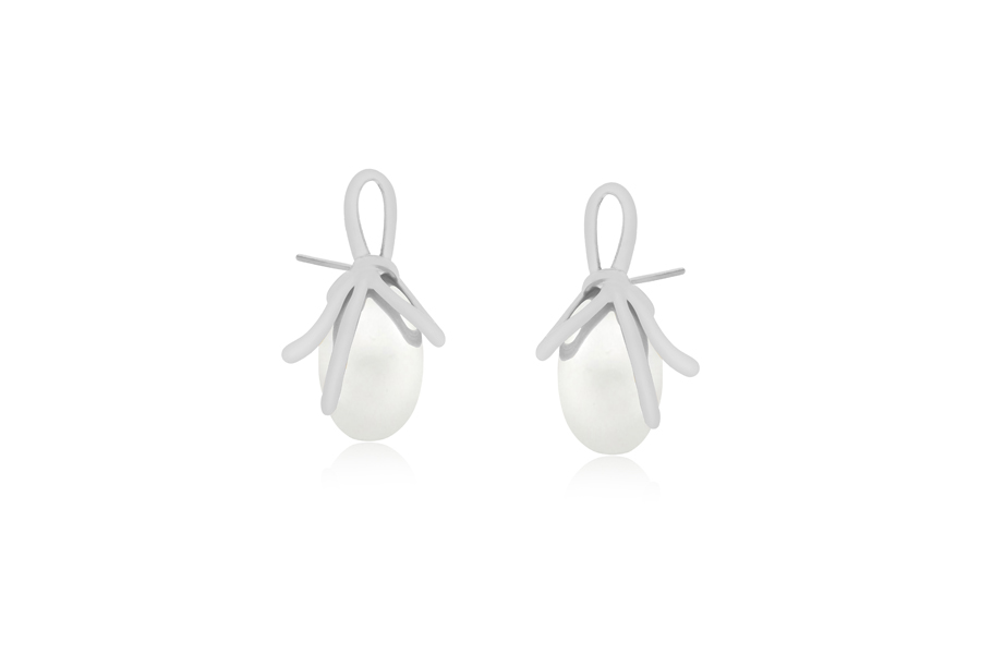 BRINCO BANHADO EM RÓDIO BRANCO, 26mm ALTURA E 10mm LARGURA