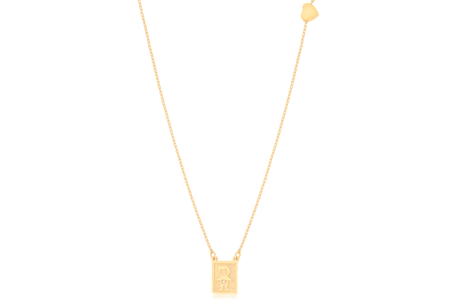 GARGANTILHA BANHADA EM OURO, ELO 1,80mm LARGURA, 40cm COMPRIMENTO E CORAÇÃO 11mm LARGURA COM ZIRCÔNIAS BRANCAS OU COLORIDAS