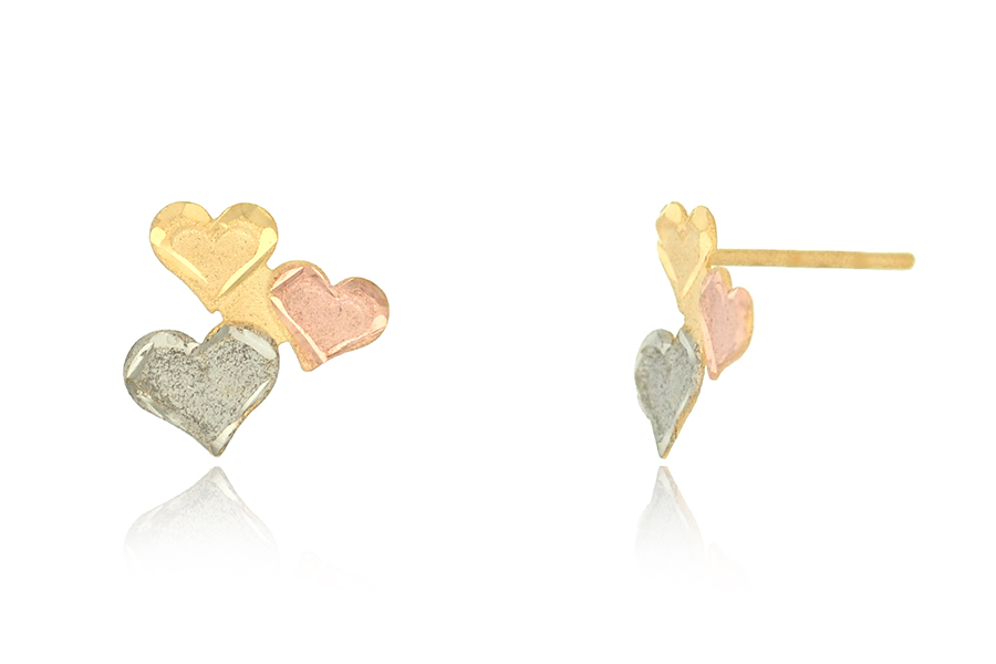 CONJUNTO BANHADO EM OURO, TRIO DE BRINCOS, PONTO DE LUZ 5, 4 E 3mm, CRAVAÇÃO INGLESA