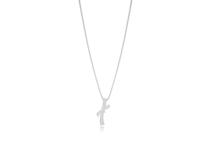 GARGANTILHA BANHADA EM RÓDIO BRANCO, ELO 1,20mm, 40cm COMPRIMENTO E PINGENTE REDONDO 13,50mm, COLEÇÃO FILIGRAN