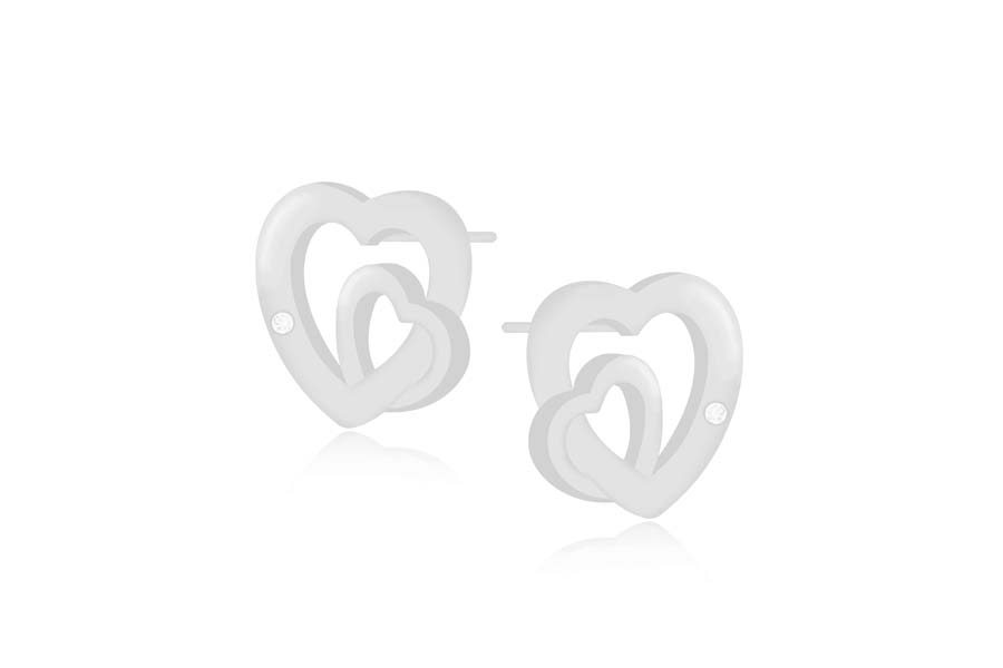 BRINCO EM PRATA, MEIA ARGOLA, CORAÇÕES VAZADOS INTERCALADOS COM ZIRCÔNIAS, 14,50mm ALTURA