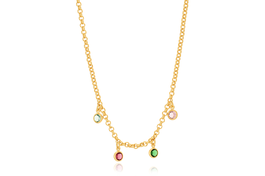GARGANTILHA BANHADA EM OURO, ELO 1,80mm LARGURA, 40cm COMPRIMENTO E CORAÇÃO 11mm LARGURA COM ZIRCÔNIAS BRANCAS OU COLORIDAS