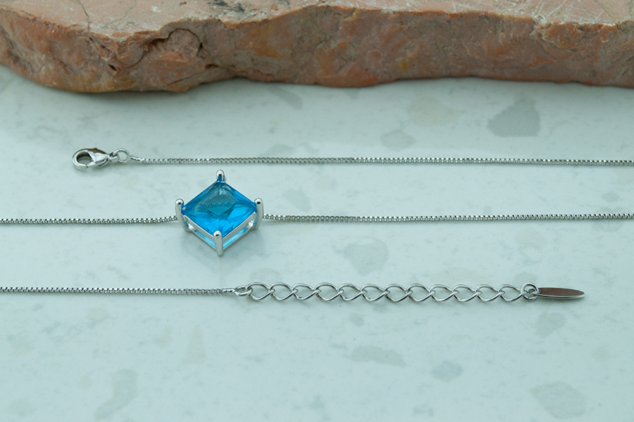 GARGANTILHA BANHADA EM OURO, CRISTAL FUSION RETANGULAR 10x8mm, GOTA 14x10mm, VENEZIANA 0,80mm, GRAVATA, QUALQUER COR