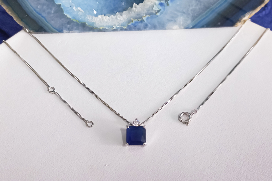 GARGANTILHA EM PRATA, 2 ZIRCÔNIAS GOTA E 3 PONTOS DE LUZ COM CRAVAÇÃO INGLESA, ELO CADEADO, 40+5cm COMPRIMENTO