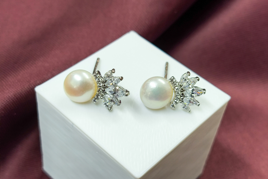 BRINCO BANHADO EM RÓDIO BRANCO, PONTO DE LUZ 5mm, CRAVAÇÃO INGLESA